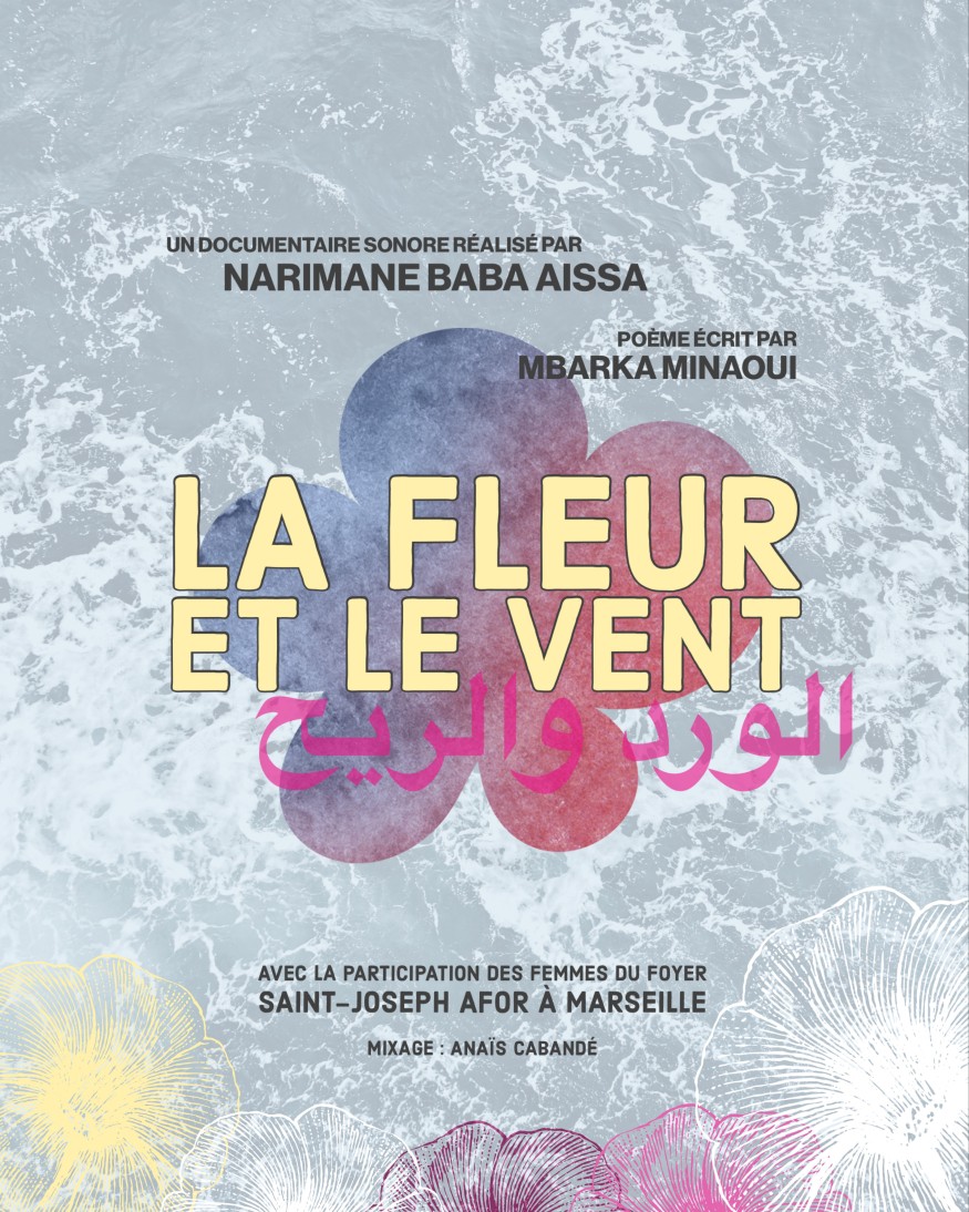 La fleur et le vent est un documentaire sonore, qui croise en poésie les récits migratoires de femmes récemment arrivées à Marseille. Réalisé à l'issue d'une série d'ateliers sonores dans un foyer maternel d'hébergement à l'été 2023, les femmes qui y témoignent sont toutes jeunes mères. Elles racontent leurs fuites et leurs luttes, les épreuves et désillusions rencontrées sur le chemin. En exil partout, elles luttent pour l'obtention de leurs papiers et la chance d'un nouveau départ pour elles et leurs enfants.