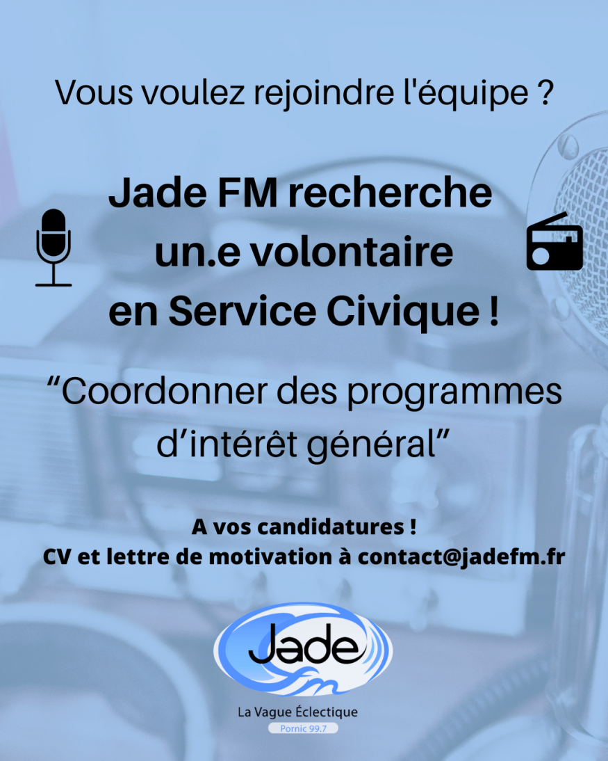 Vous pouvez nous envoyer un CV et une lettre de motivation à contact@jadefm.fr