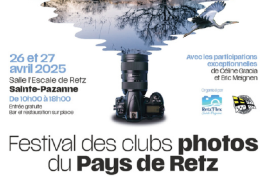 Première Edition du Festival Photo à Ste Pazanne : 12 clubs du Pays de Retz présentent leurs travaux. 400 photographies exposées les 26 et 27 avril, Salle l'Escale à Ste Pazanne.